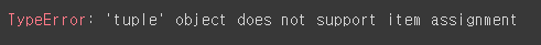 tu7 = ('apple', 'banana', ['🍓', '🥎']) # 튜플 안의 리스트에서는 수정 가능